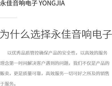 拉薩永佳音響電子有限公司 拉薩永佳音響電子有限公司坐落于美麗富饒的圣城拉薩,公司前身為拉薩昊成音響電子銷售有限公司,注冊資金為300萬元,成立于2010年3月公司地址位于西藏拉薩市貢布塘南側(cè)1號薩博廣場4-5、4-8號。拉薩永佳音響電子有限公司主營專業(yè)舞臺音響設備、會議音響系統(tǒng)設備、公共廣播音響系統(tǒng)設備、網(wǎng)絡及監(jiān)控設備、多媒體教學設備、多媒體投影機、幕布、弱電線材、辦公設備、LED液晶顯示屏品種齊全、服務效率、拉薩
